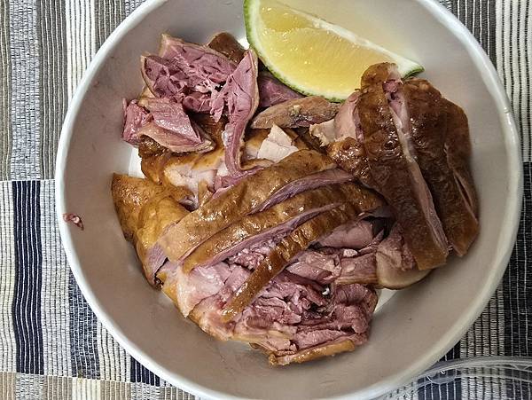 最近常在臉書上看到鵝老爺介紹屏東附近的美食貼文,就開車直驅長治繁華探索一下鵝老爺的美味,到店時旁邊的繁榮水煎包大排長龍,由於3C讓雙眼過度使用已近二年沒貼文了,但看到年輕老闆的親切,目前只有外帶,我買一份350元的燻茶鵝,老闆也幫忙去骨,回家一打開滿滿的鵝肉香氣,晚上有口福了。外帶回家的無骨燻茶鵝